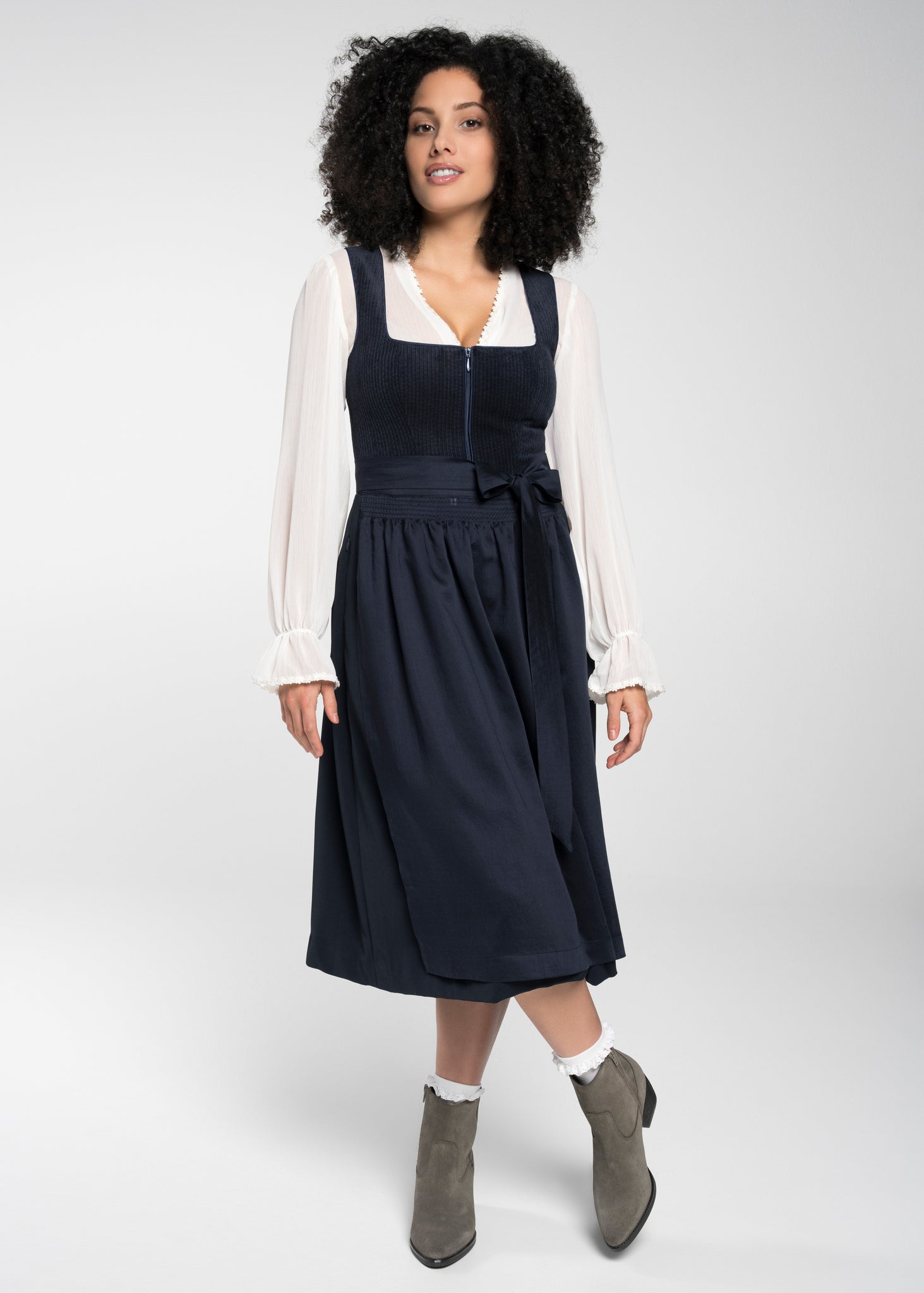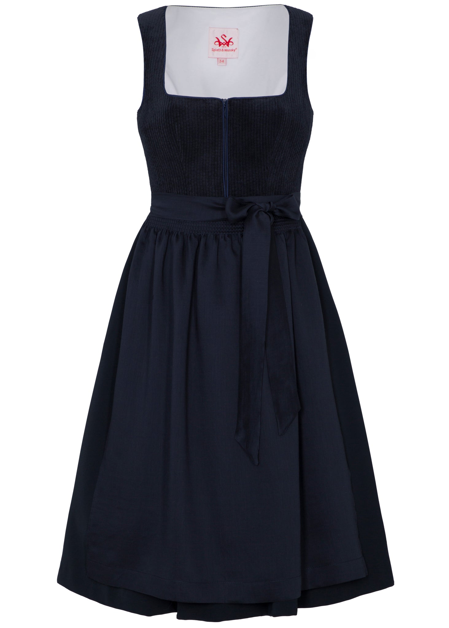 The 'Dasing' dirndl by Spieth & Wensky combines feminine elegance with modern touches. Characteristic of this dirndl are its medium length and charming corduroy design, complemented by the playful apron and bow. The discreet front zipper makes the dirndl easy to put on and take off, while the delicate apron harmoniously rounds off the overall look. A must-have for style-conscious women at traditional occasions.