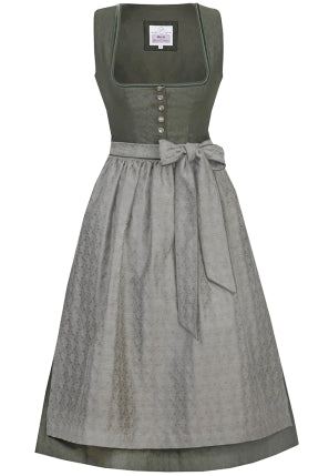 The Lina Dirndl in Fern is a true gem in a beautiful olive green that's perfect for any occasion. With its classic 68 cm skirt length and the simple design of the MarJo Trachten brand, it exudes timeless elegance. The high-quality jacquard taffeta apron gives the dirndl a sophisticated touch, while the small buttons on the front add a lovely touch. You can combine this dirndl in many different ways – it looks simply stunning with a blouse in green, cream, or white, as well as with a black dirndl blouse. A green traditional jacket perfectly rounds off your look, creating a harmonious tone-on-tone outfit. Whether at Oktoberfest, a wedding, a traditional celebration, or a cozy folk festival – the Lina Dirndl is the ideal companion and ensures you cut a fine figure wherever you go. In our shop, you'll also find a selection of matching accessories to complete your look. Choose from beautiful necklaces, earrings, or hairbands and add additional highlights that make your outfit even more unique. Please note that the price does not include a blouse, but don't worry – we have a wide variety of blouses in our range. So you can combine the dirndl to suit your taste. With the Lina dirndl, you'll always be stylishly and traditionally dressed, no matter the occasion.
