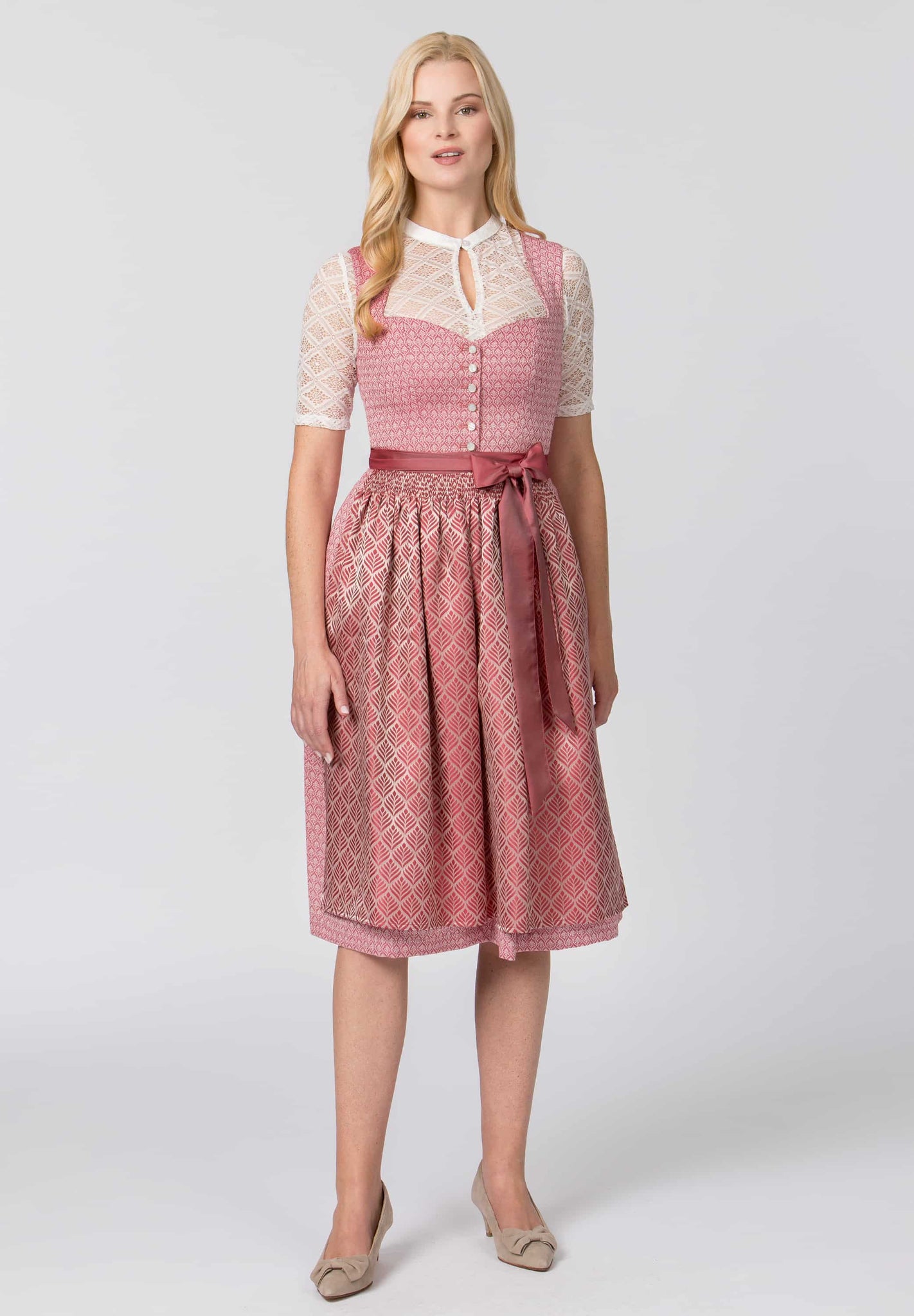 • Style: With its shimmering mother-of-pearl buttons, the dirndl has a touch of luxury that highlights the timeless beauty of the design.