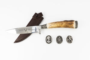 Partial for special order 59394 B Sima Lederhosen Messer / Hunters Knife / Nicker Messer with silver plated Bayernwappen/ Bavarian crest at end of handle