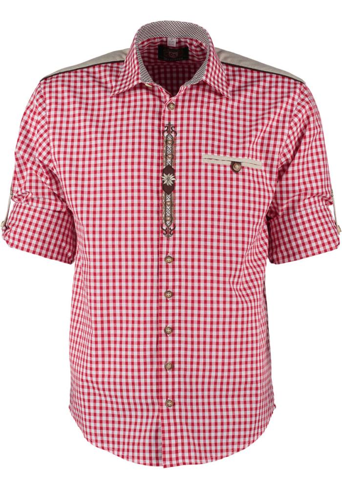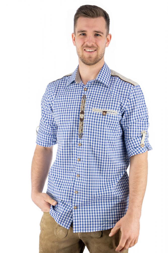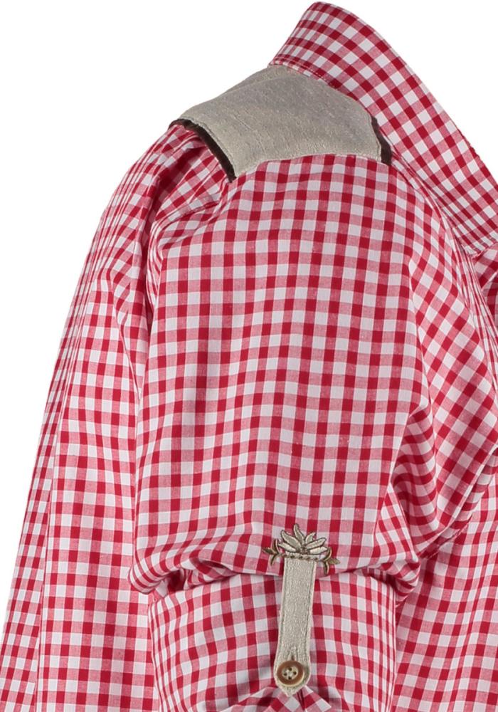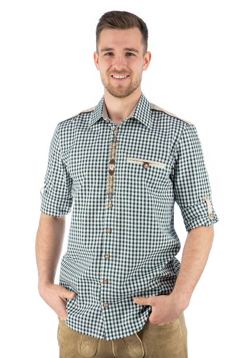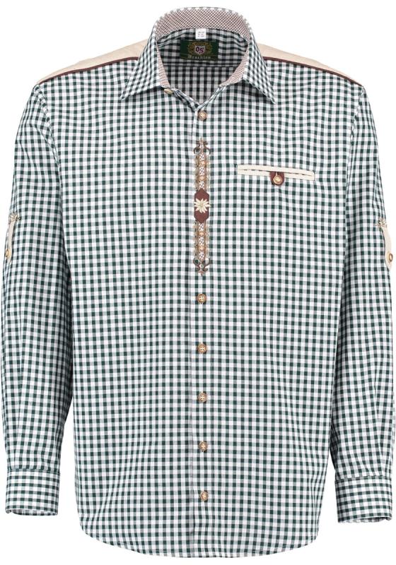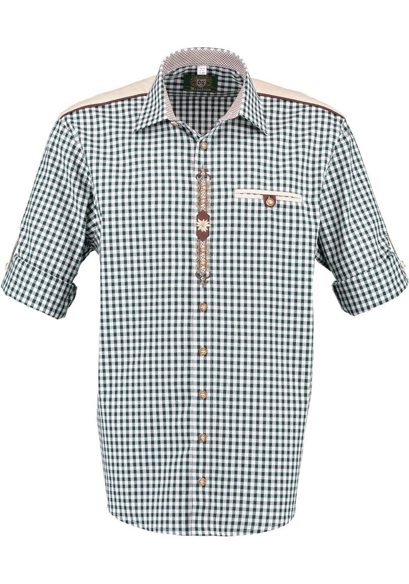 420032-2602 OS Men Trachten Shirt Regular Fitted Cut 1/1 Sleeve with shoulder design front pocket with Bone buttons and embroidered details in front and sleeves