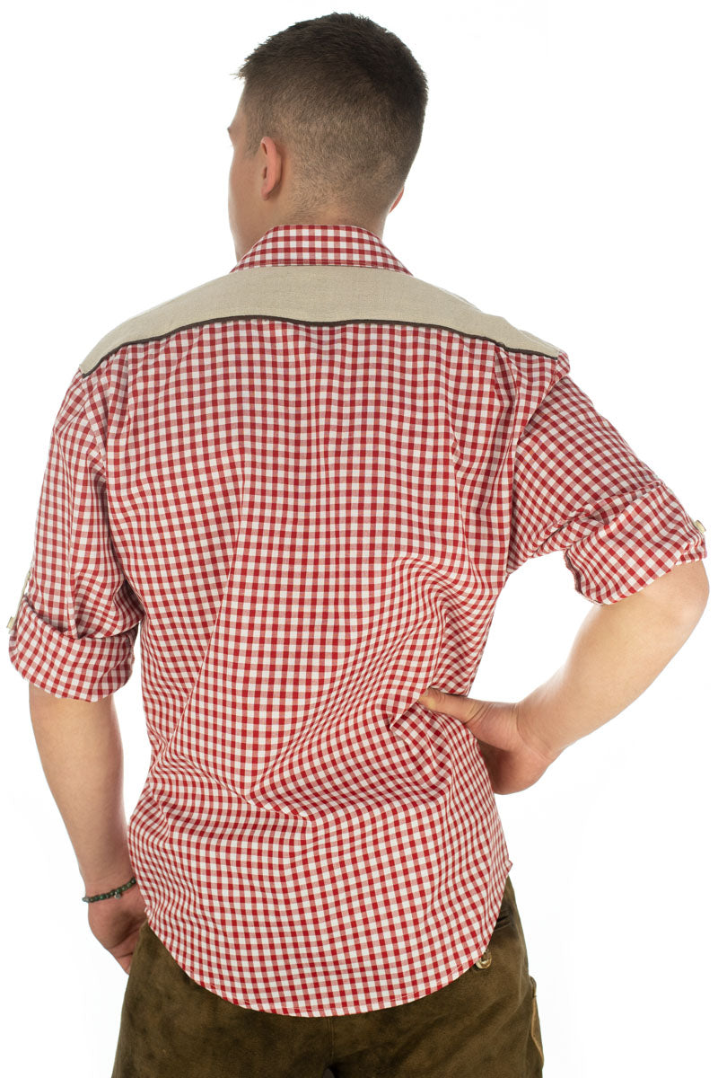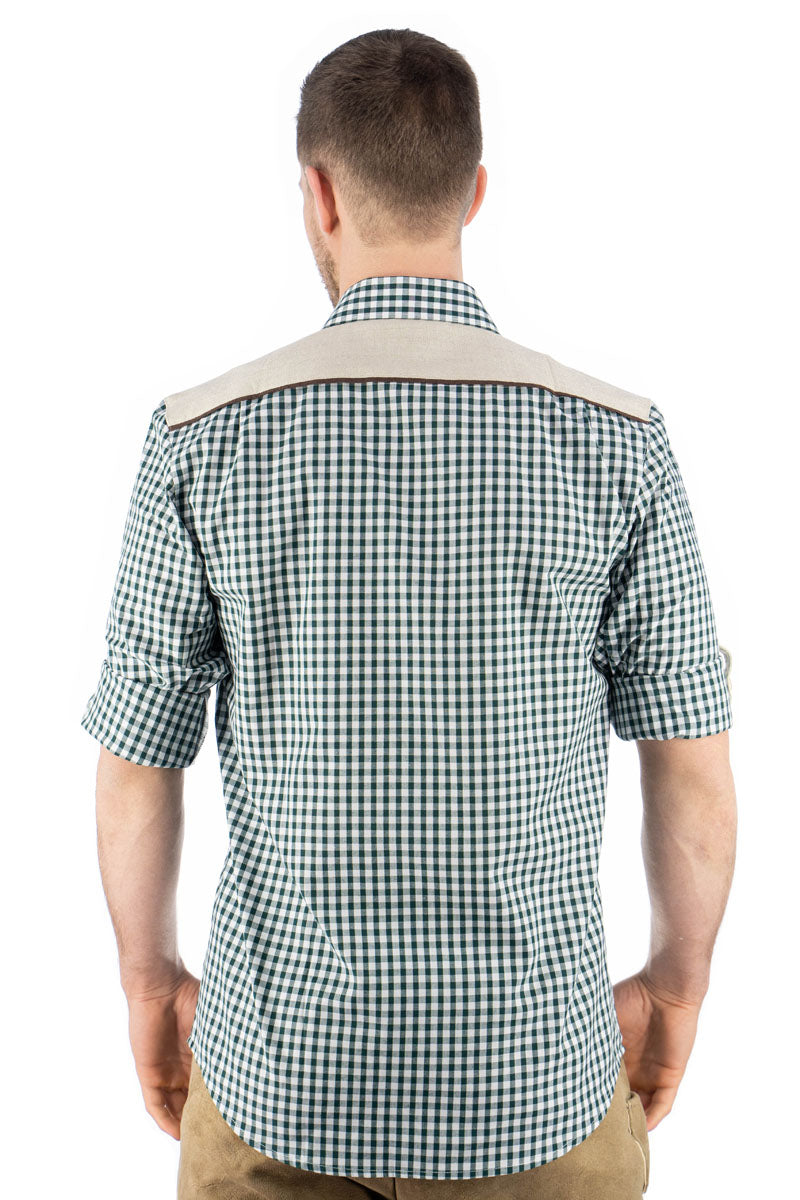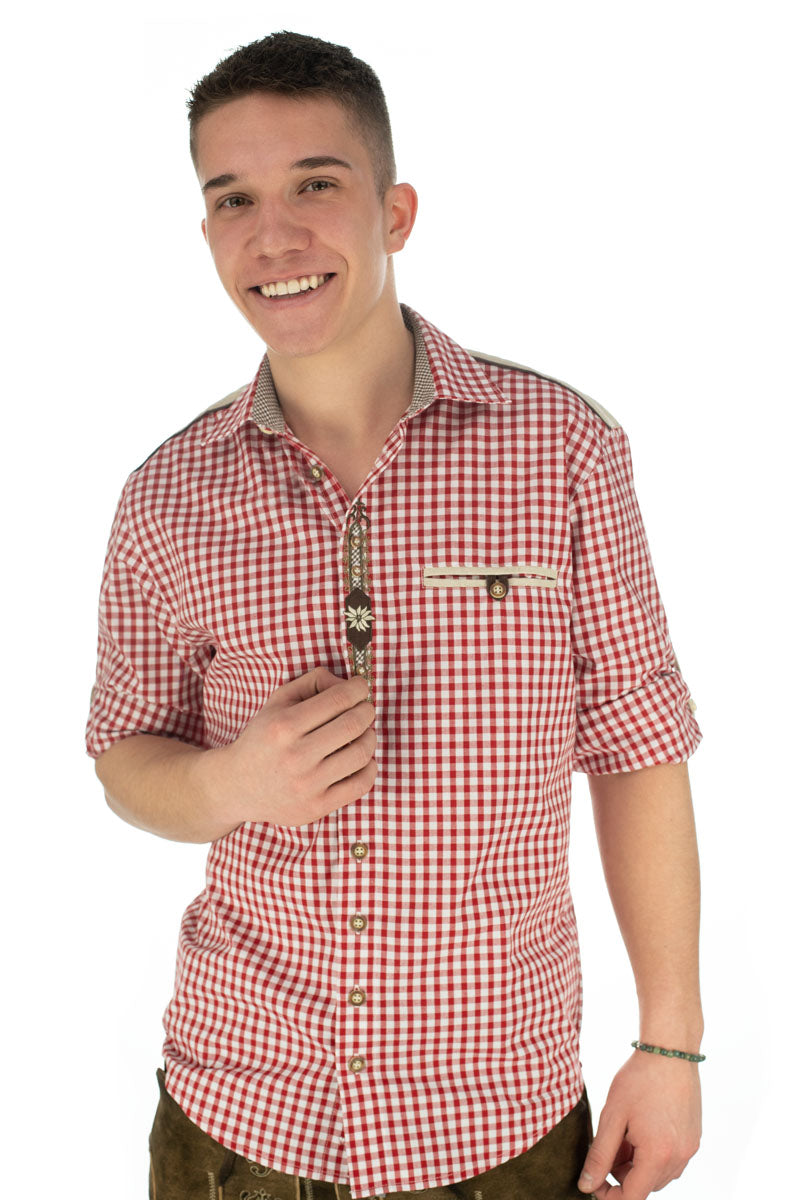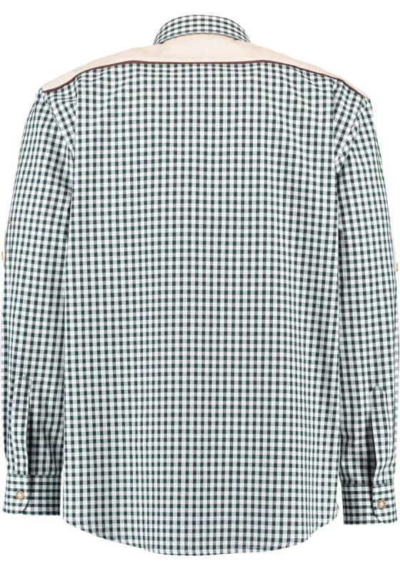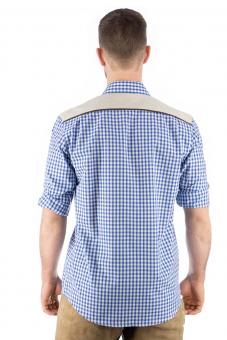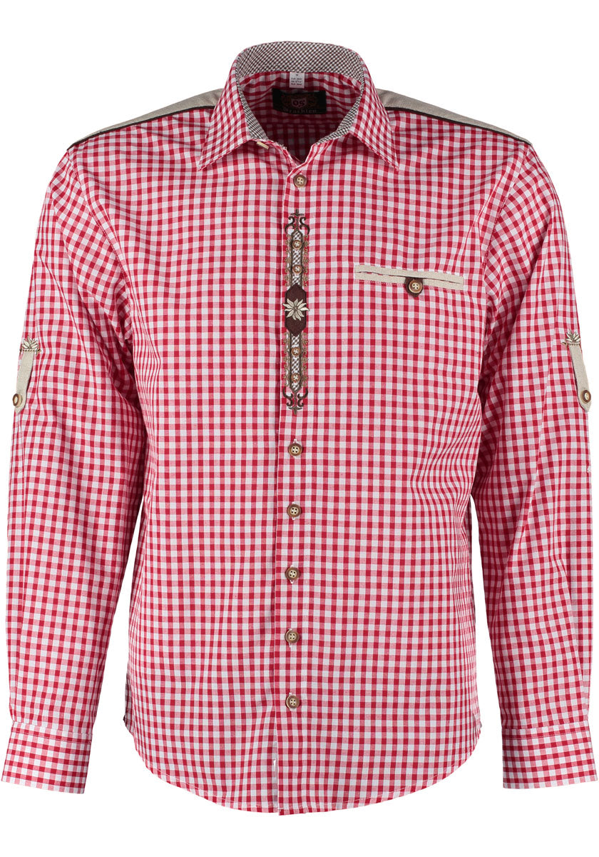 420032-2602 OS Men Trachten Shirt Regular Fitted Cut 1/1 Sleeve with shoulder design front pocket with Bone buttons and embroidered details in front and sleeves