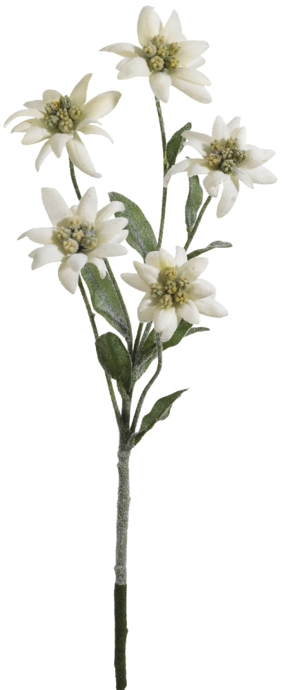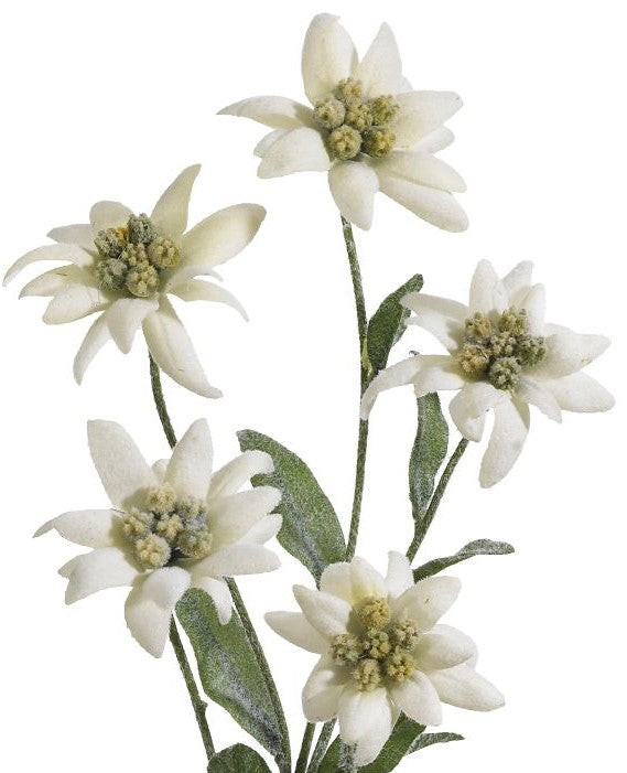 Beautiful Silk Edelweiss flower stem with 5 flowers , famous romantic flower from the Sound of Music, grows in the Alps . The German and Austrian and Swiss Symbol of Love