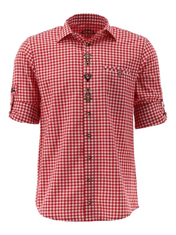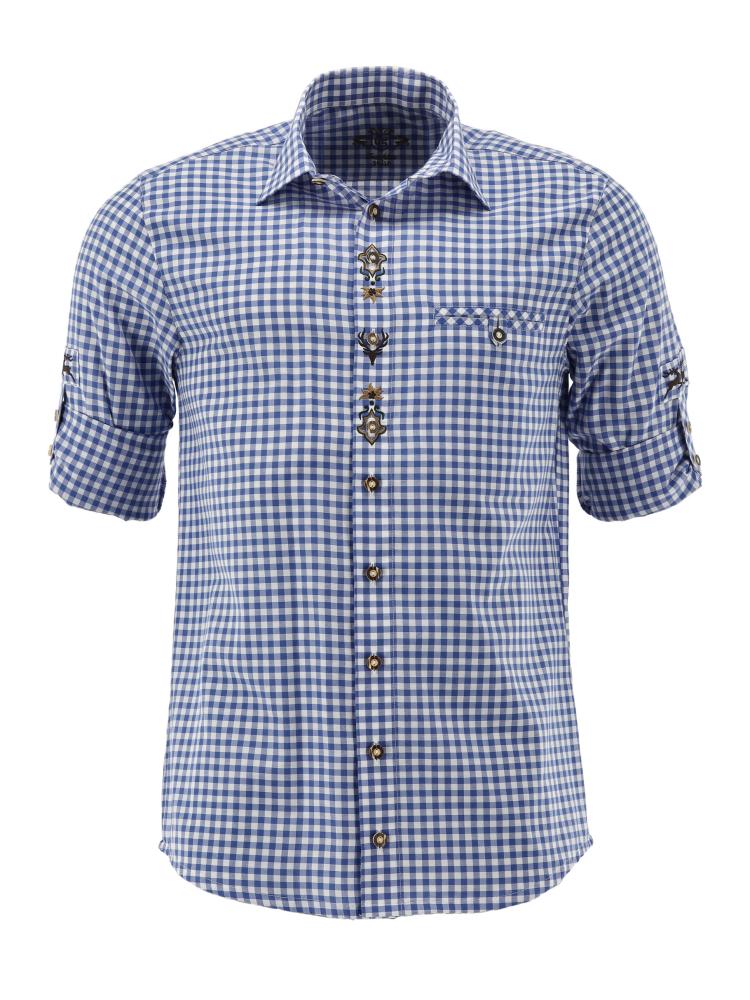 420058-2602 OS Trachten Men Long Sleeve checkered Trachten Shirt with Embroidery in the Front and Sleeves