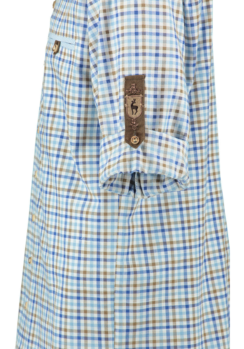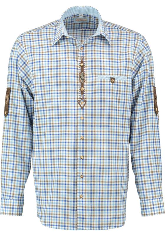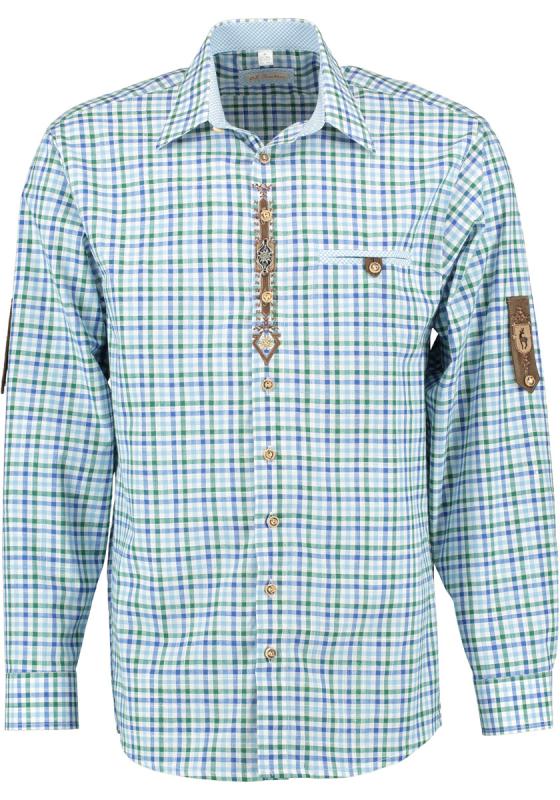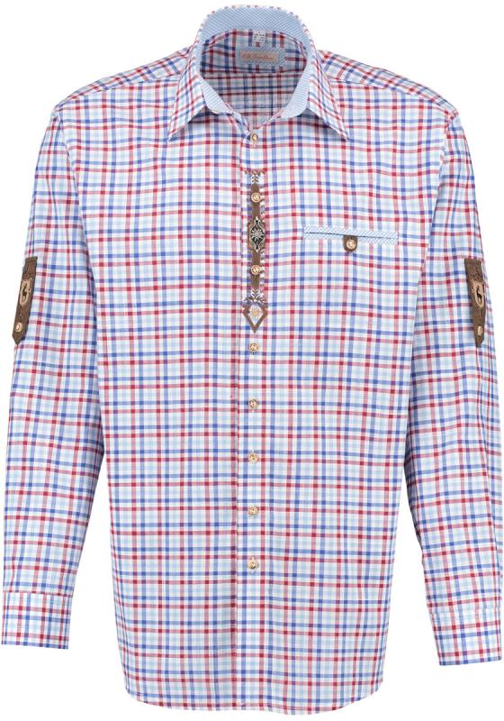 420001-3323 OS Trachten Men Long Sleeve checkered Trachten Shirt with Embroidery in the Front and Sleeves