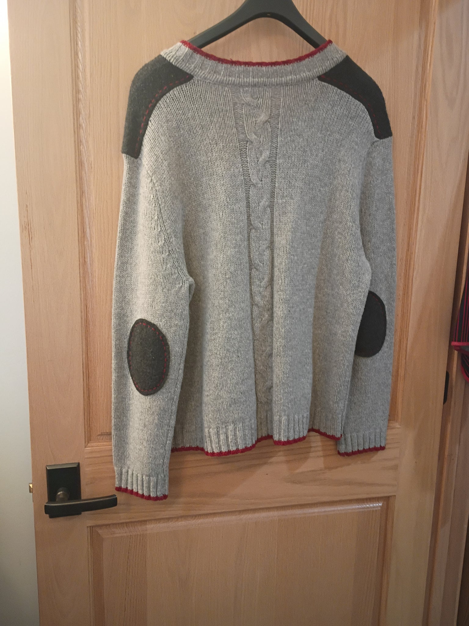 72023-82107 BEN Traditional light grey with red egding Hammerschmid Knitted Wool Jacket sized in men sizes